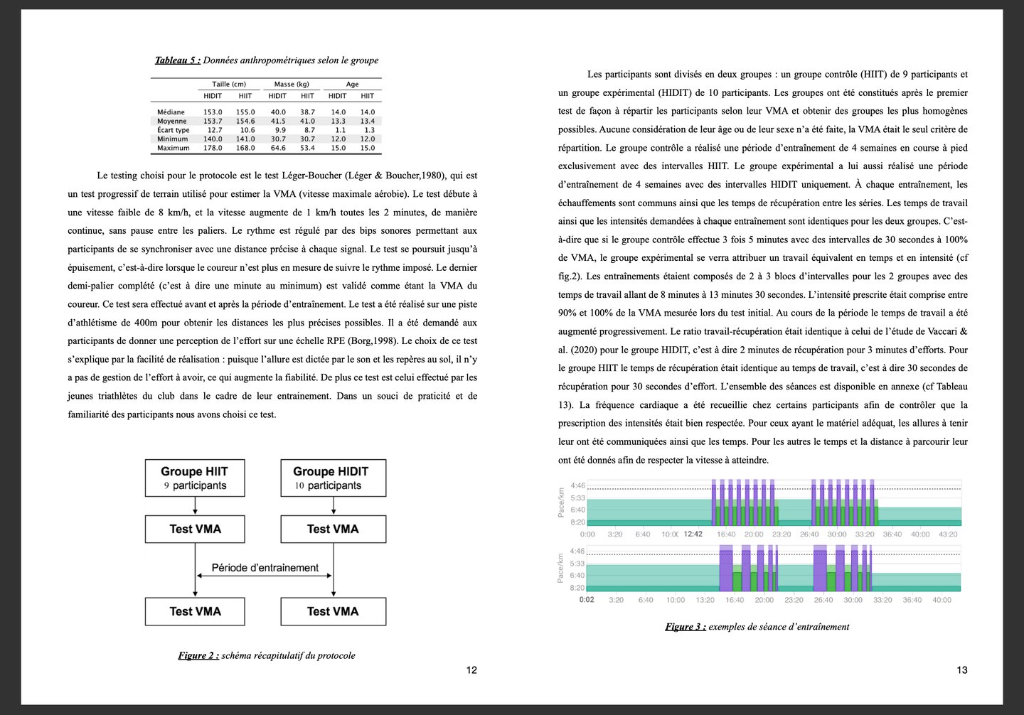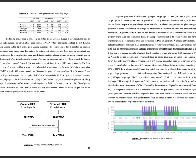 Le but de cette étude est de comparer l’impact de l’entraînement HIIT et de l’entraînement HIDIT sur la performance en course à pied sur un public de triathlètes. Pour comparer les bénéfices de ces méthodes d’entraînement nous avons mesuré la VMA.